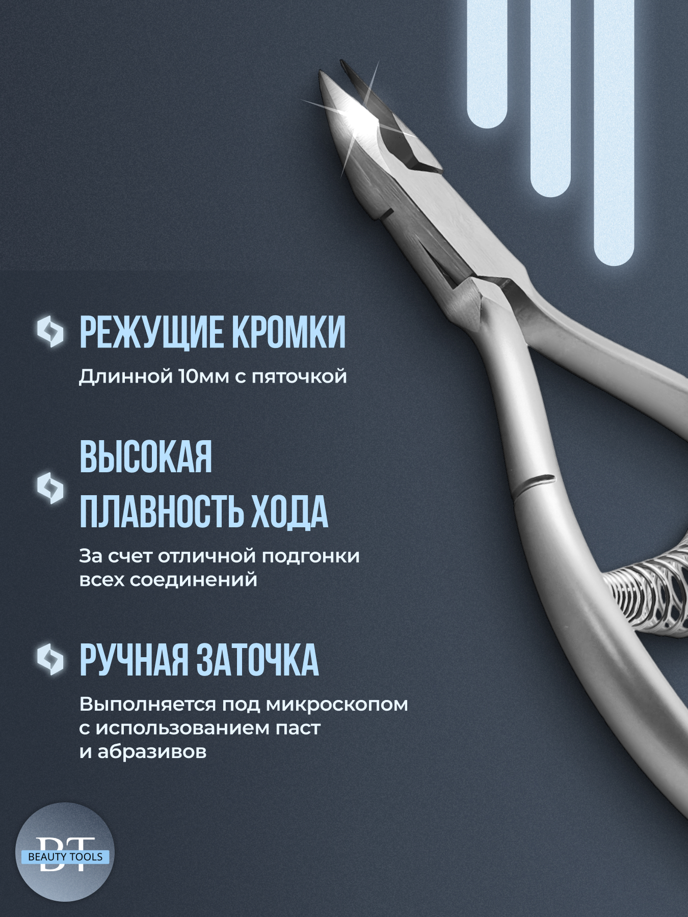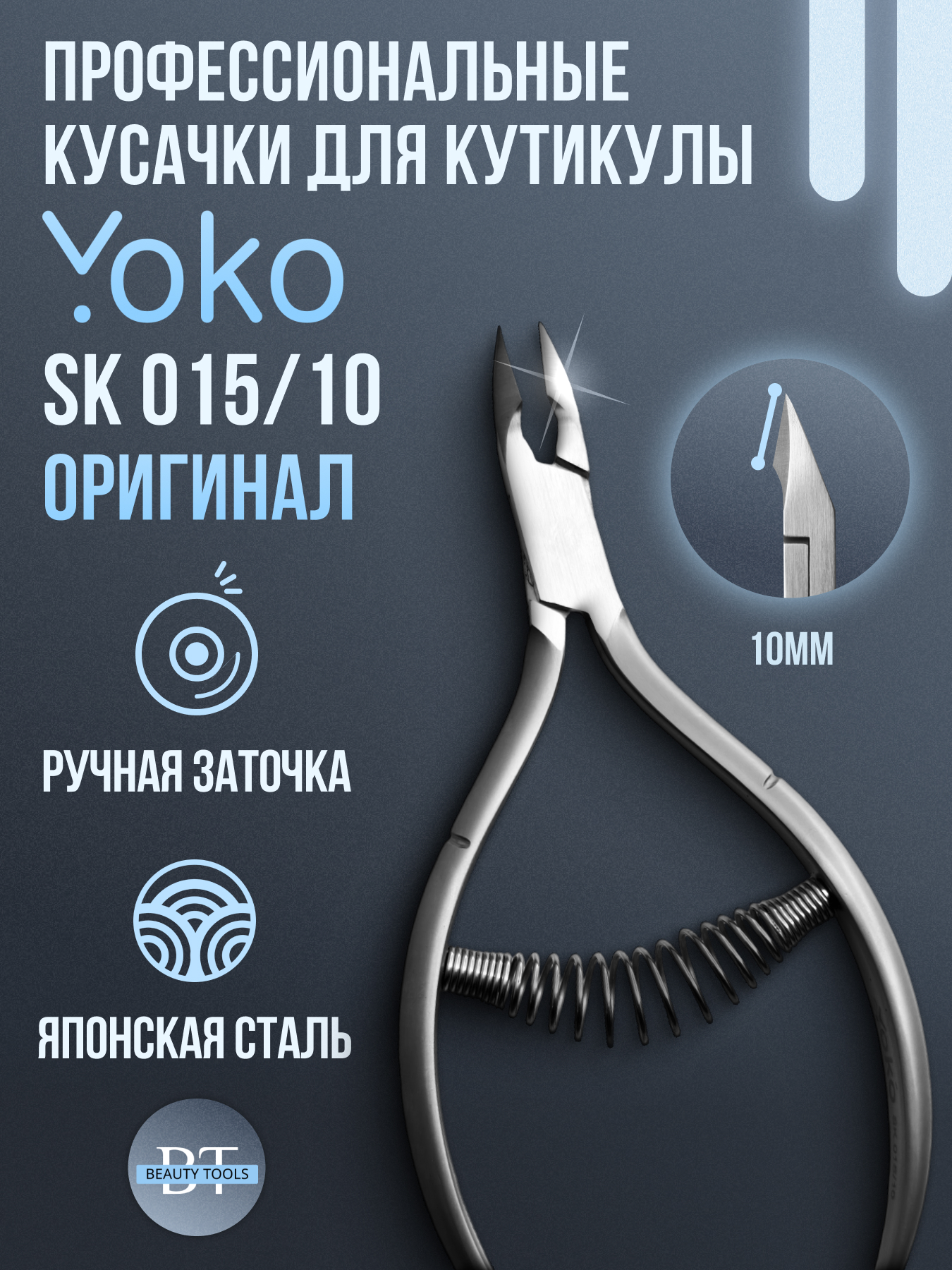Профессиональные кусачки для кутикулы из японской нержавеющей стали бренда YoKo. Инструмент со спиральным типом пружины и удобными классическими ручками. Кусачки имеют профессиональную ручную заточку рабочей поверхности, а за счёт высокой твёрдости стали сохраняют её достаточно долго. Длина режущей кромки 10 мм. Инструмент устойчив ко всем видам дезинфекции и стерилизации.