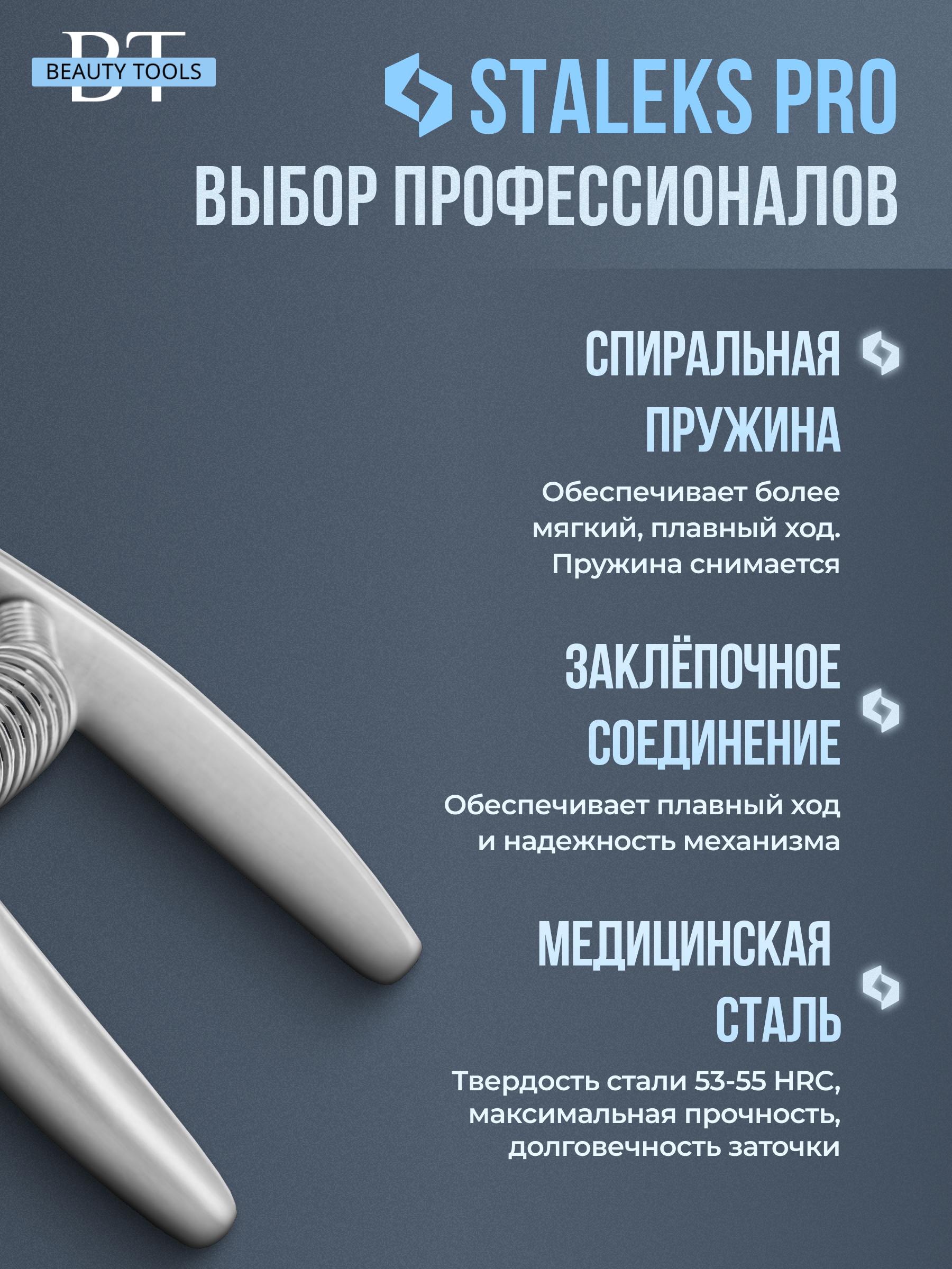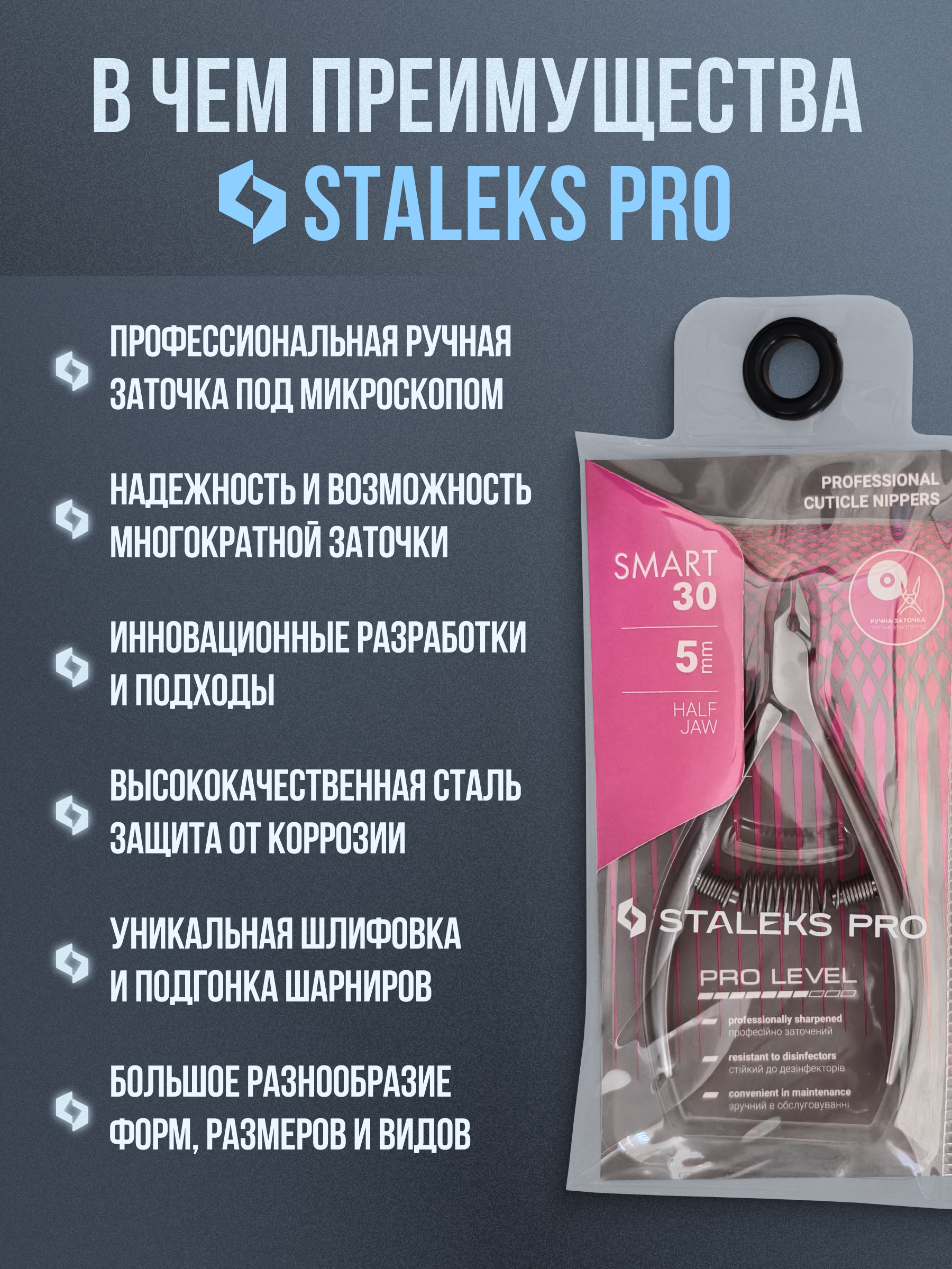 Кусачки для обработки кутикулы Smart изготовлены из высококачественной нержавеющей стали, которая длительное время не подвергается коррозии и выдерживает многократные заточки. Инструмент со спиральным типом пружины и длиной режущей кромки 5 мм устойчив ко всем видам дезинфекции и стерилизации.