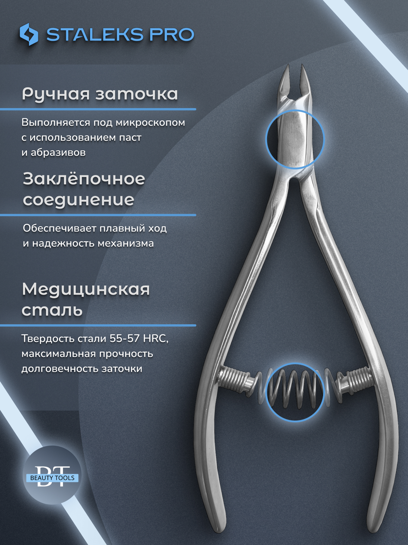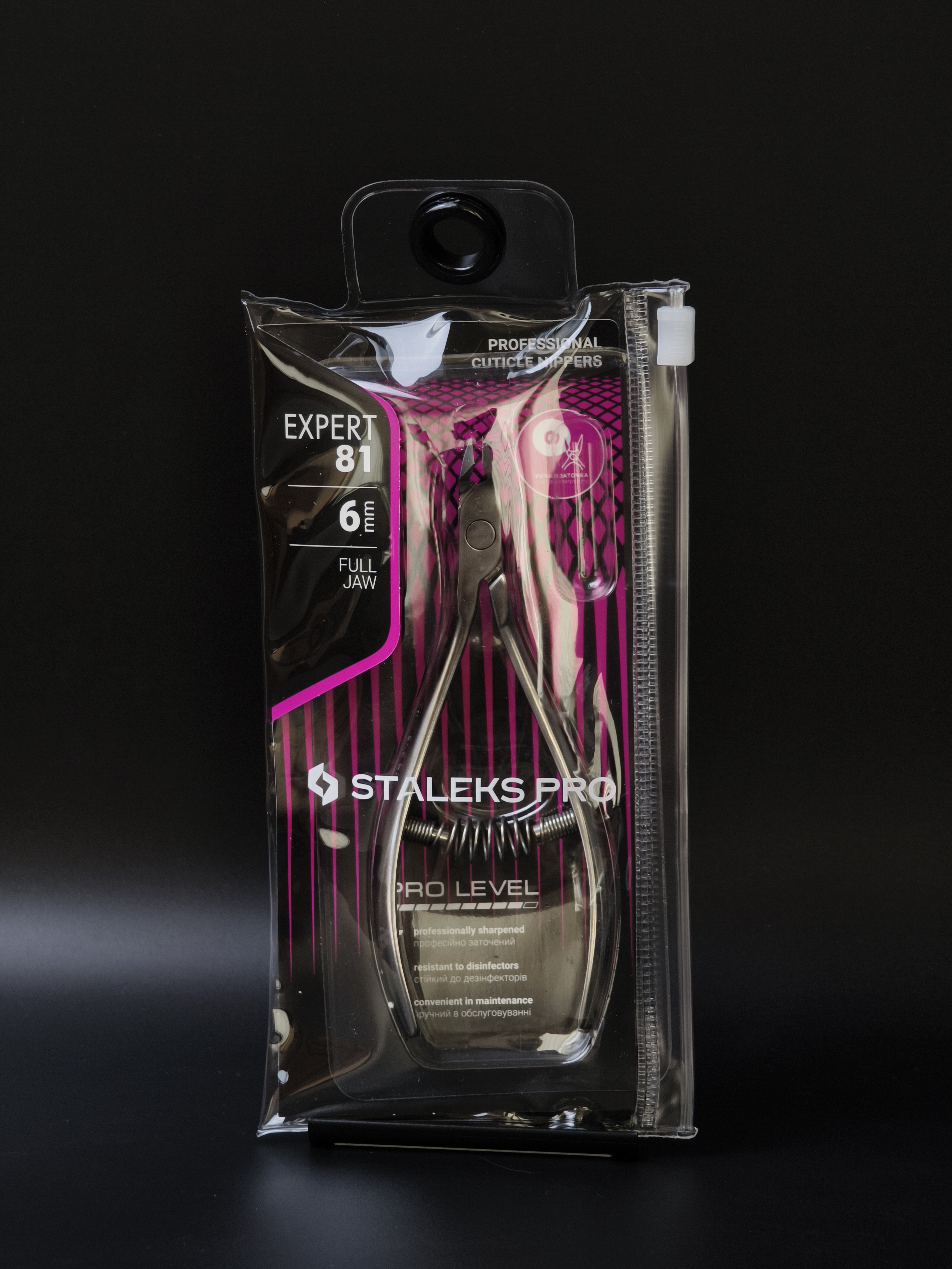 Кусачки для обработки кутикулы и ногтей Expert изготовлены из высококачественной нержавеющей стали, которая длительное время не подвергается коррозии и выдерживает многократные заточки. Инструмент со спиральным типом пружины и длиной режущей кромки 6 мм устойчив ко всем видам дезинфекции и стерилизации.