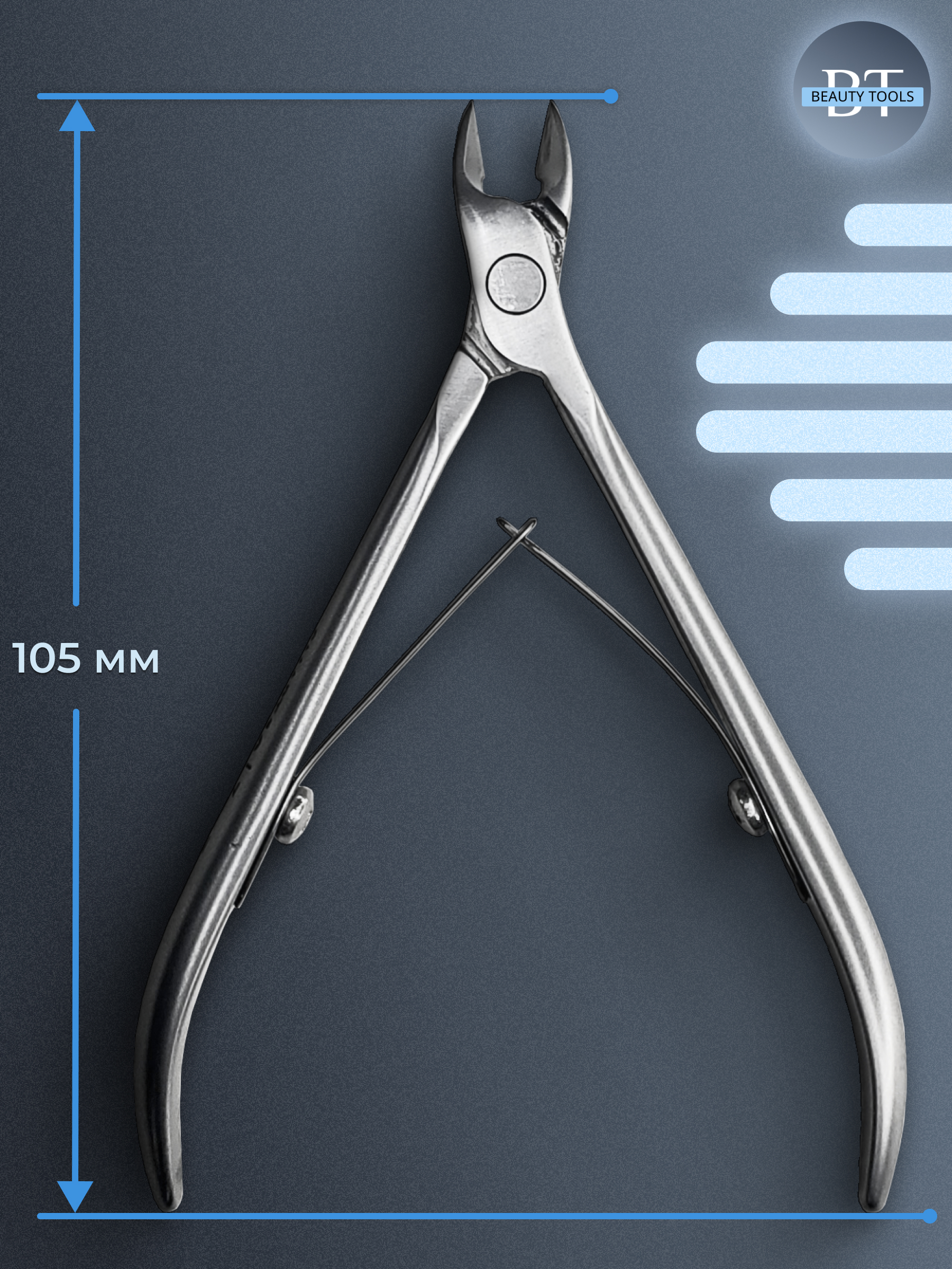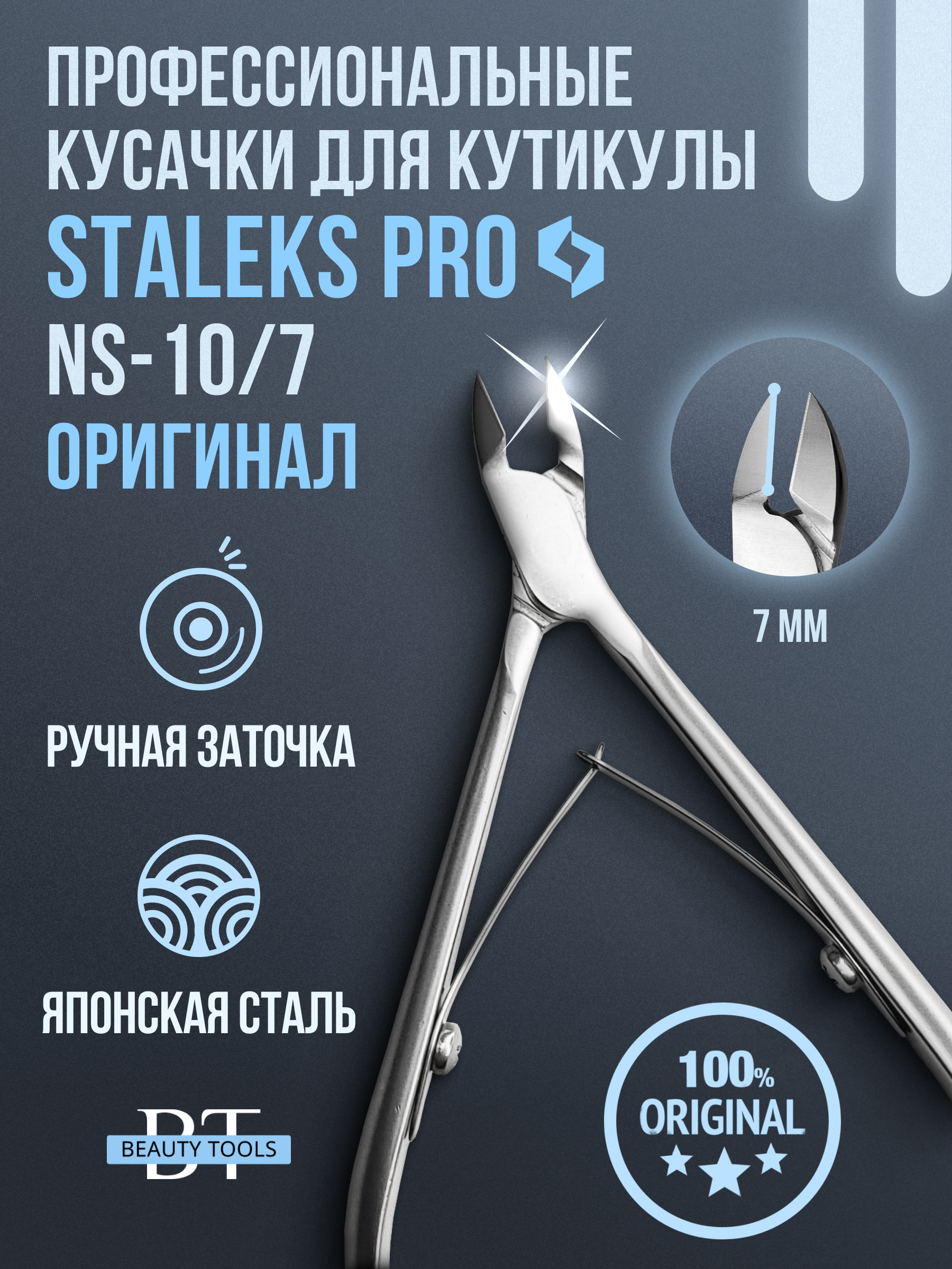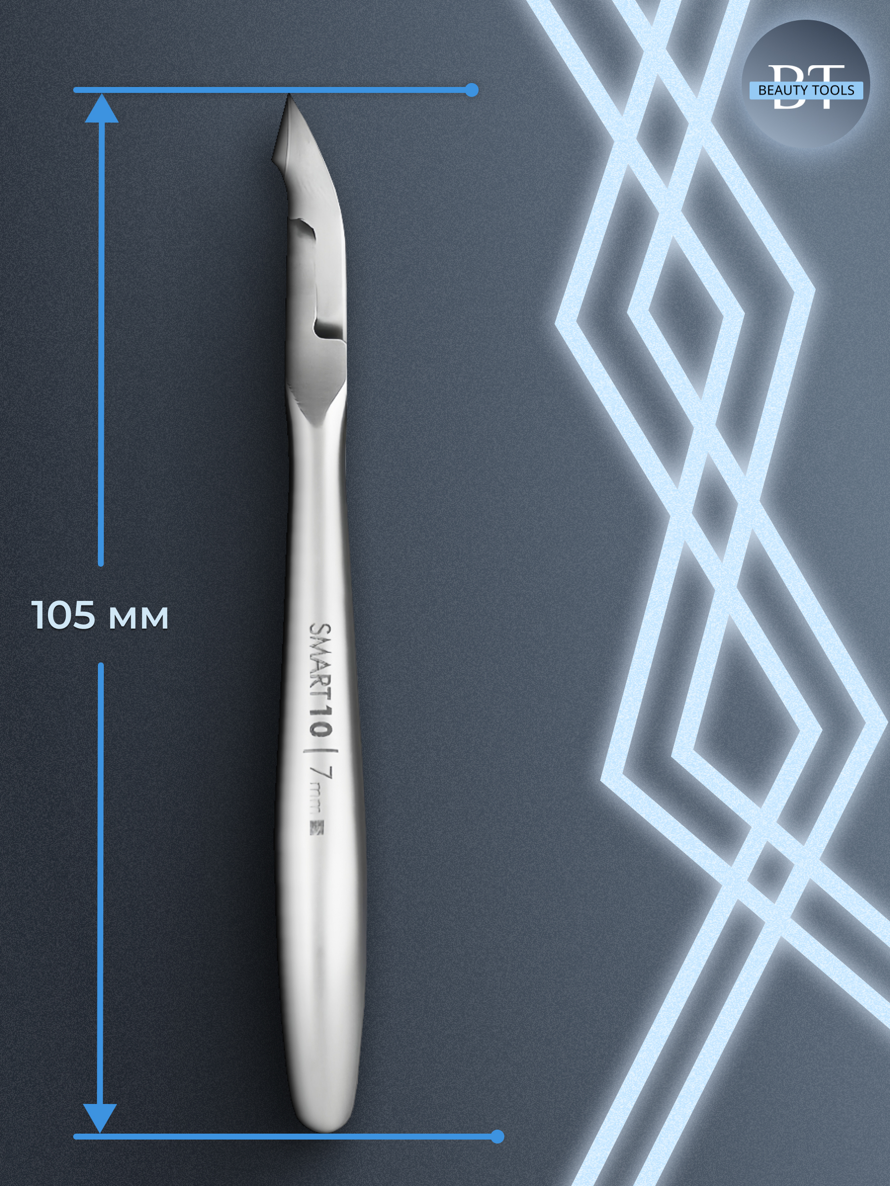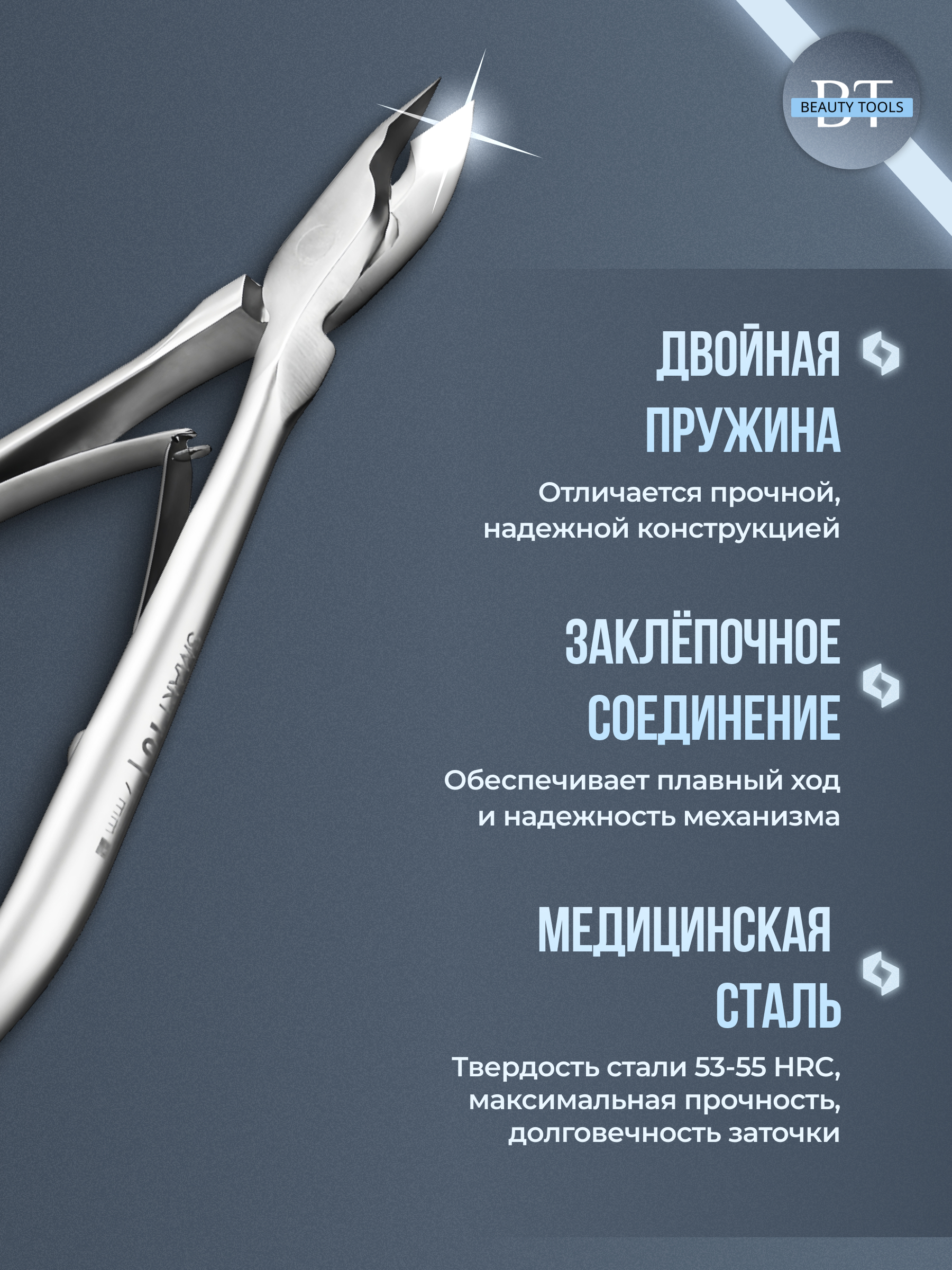 Кусачки для обработки кутикулы Smart изготовлены из высококачественной нержавеющей стали, которая длительное время не подвергается коррозии и выдерживает многократные заточки. Инструмент с двойным типом пружины и длиной режущей кромки 7 мм устойчив ко всем видам дезинфекции и стерилизации.