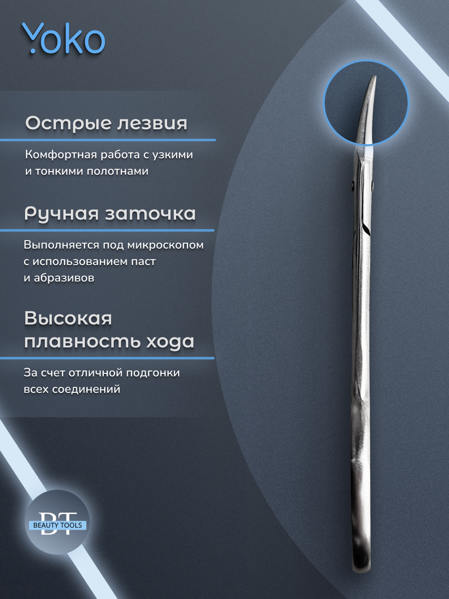 Маникюрные ножницы для кутикулы и ногтей Yoko 014. Изготовлены из высококачественной нержавеющей стали, которая длительное время не подвергается коррозии и выдерживает многократные заточки. Инструмент устойчив ко всем видам дезинфекции и стерилизации. В товаре идеально сочетаются качество, функциональность и дизайн.