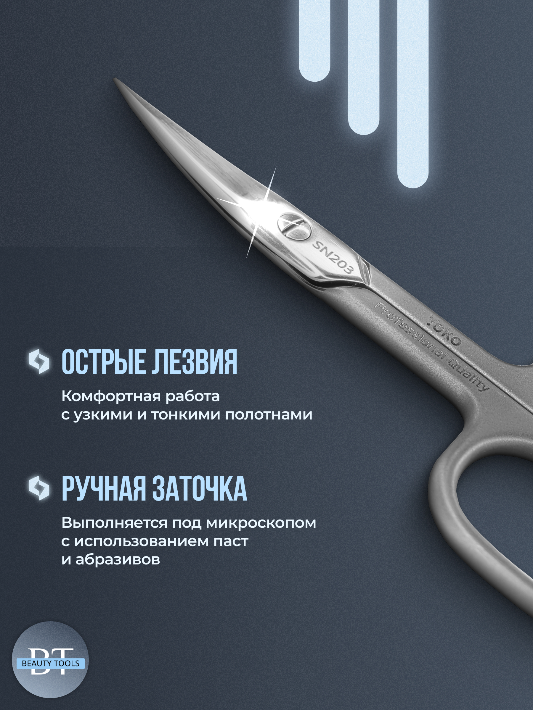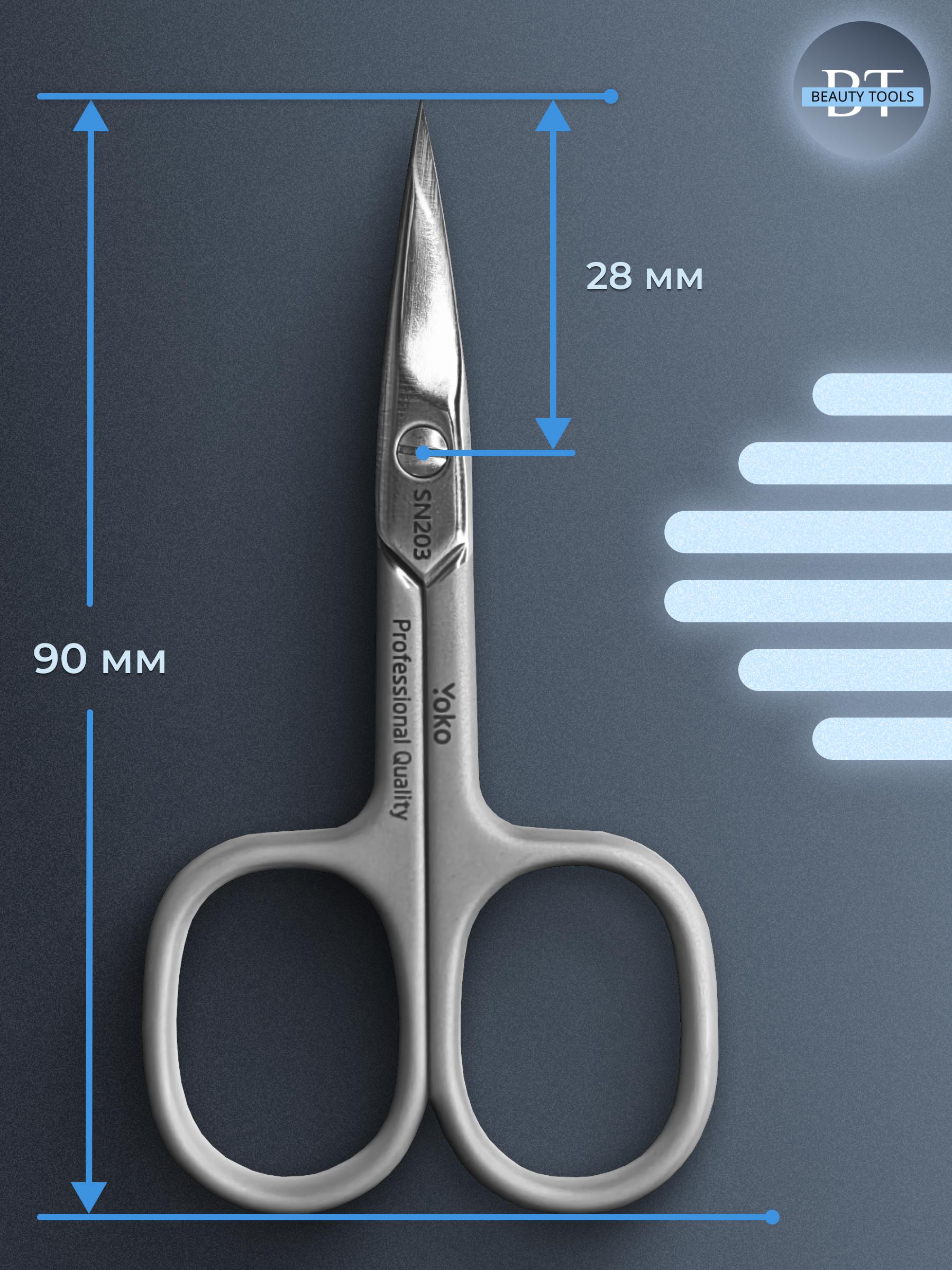 Оригинальные маникюрные ножницы для ногтей YoKo SN203. Изготовлены из высококачественной нержавеющей стали, которая длительное время не подвергается коррозии и выдерживает многократные заточки. Инструмент устойчив ко всем видам дезинфекции и стерилизации. В товаре идеально сочетаются качество, функциональность и дизайн.