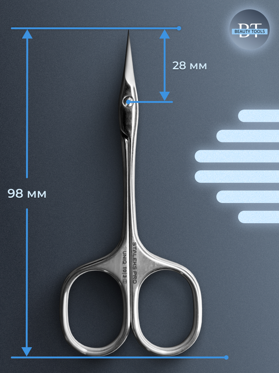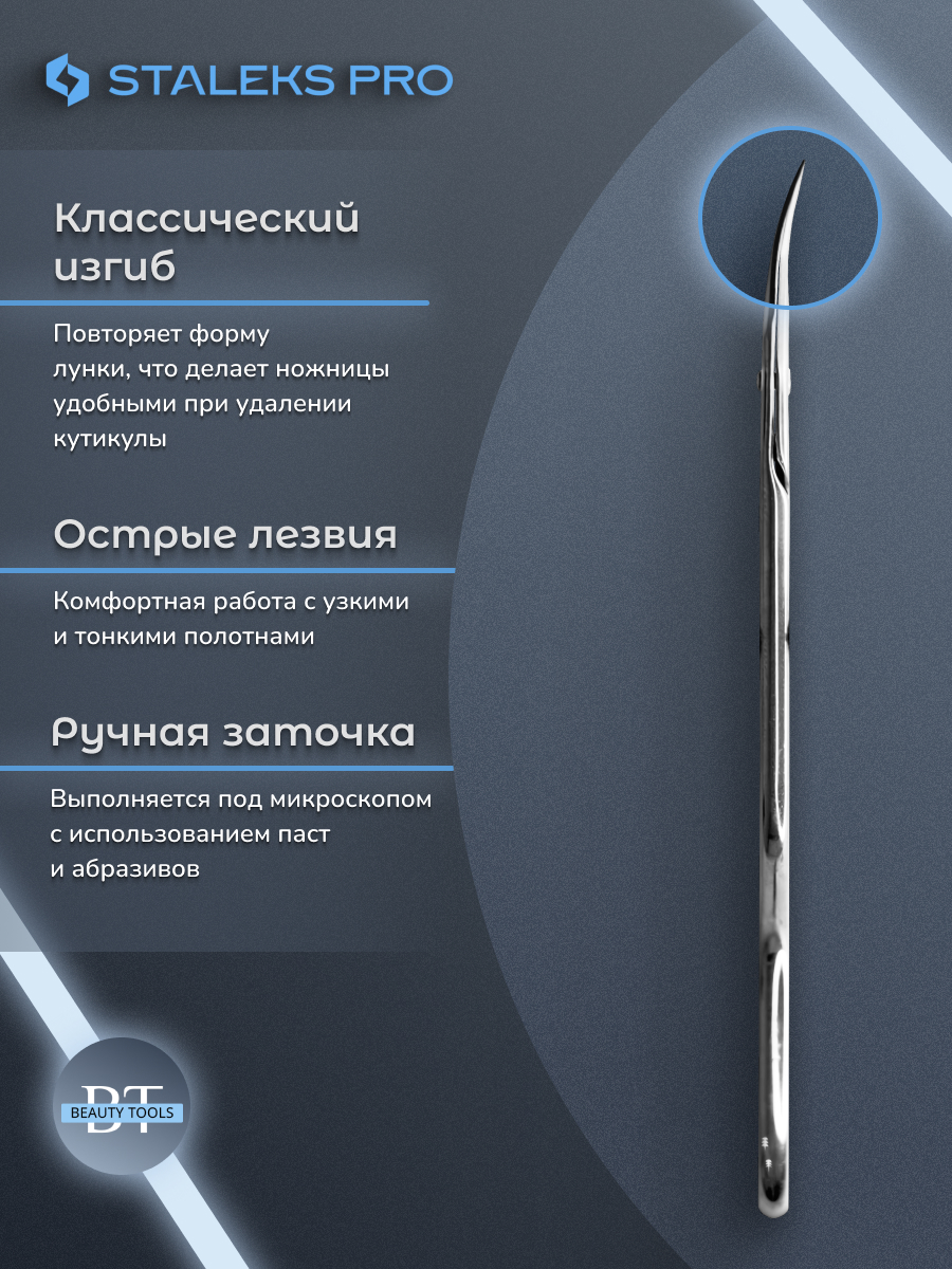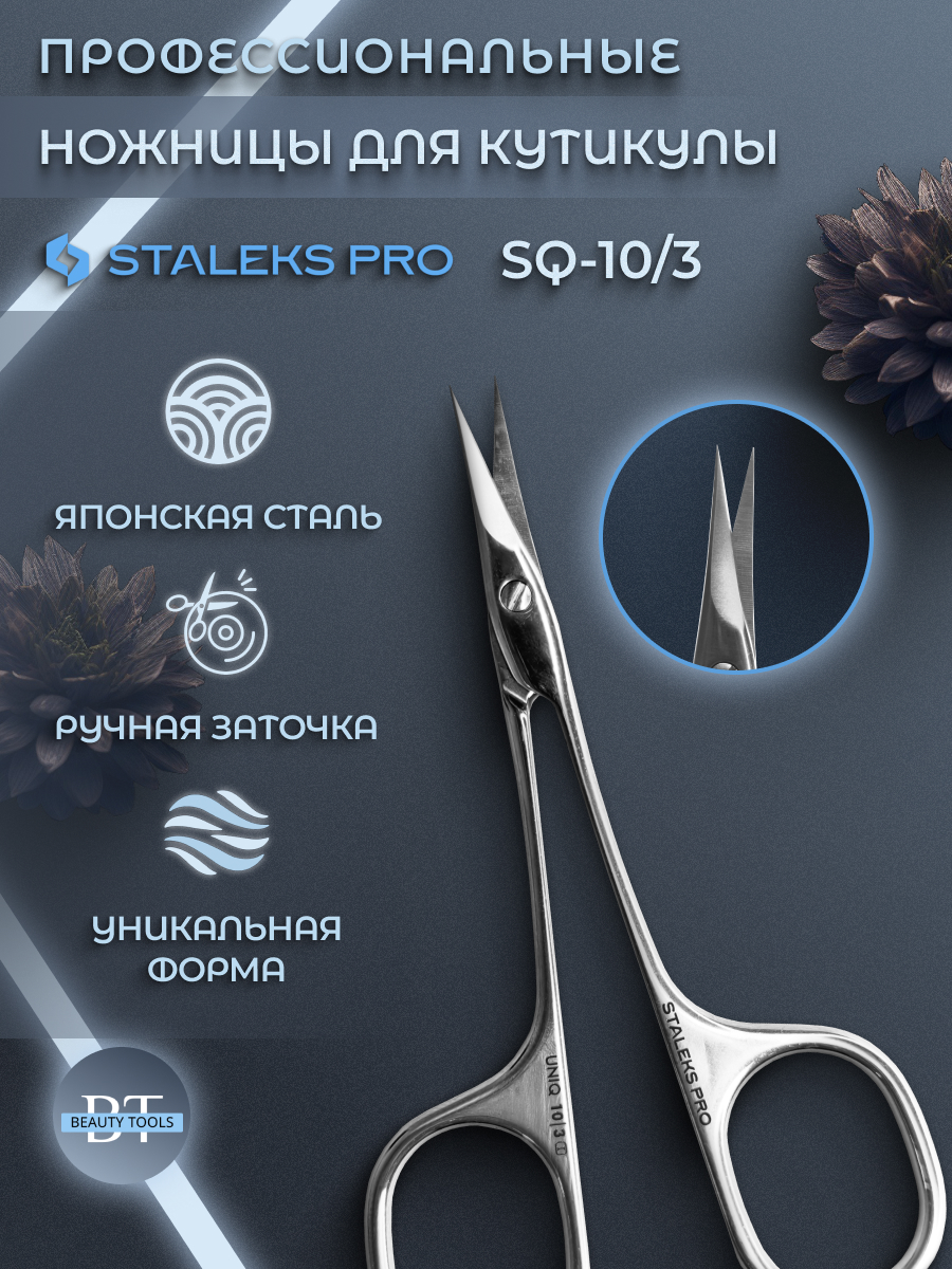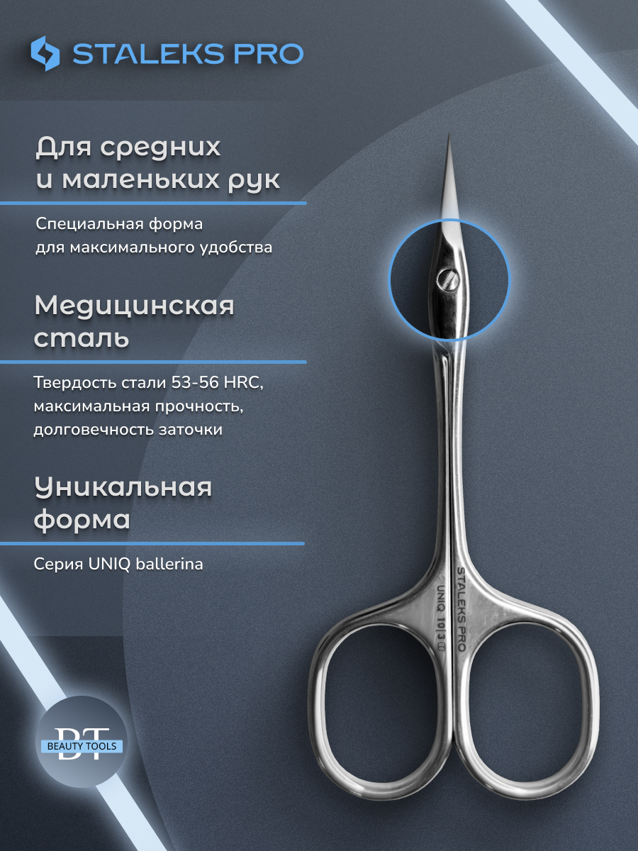 Ножницы профессиональные для кутикулы STALEKS PRO “Ballerina” UNIQ SQ-10/3. Новая улучшенная форма ножниц обеспечивает простоту использования и точность каждого движения. Поверхность инструмента приятна на ощупь, не отражает свет и не обременяет глаза мастера. Тонкие конические лезвия обеспечивают точную резку. Изготовлены из высококачественной нержавеющей стали, которая длительное время не подвергается коррозии и выдерживает многократные заточки. Инструмент устойчив ко всем видам дезинфекции и стерилизации. В товаре идеально сочетаются качество, функциональность и дизайн.