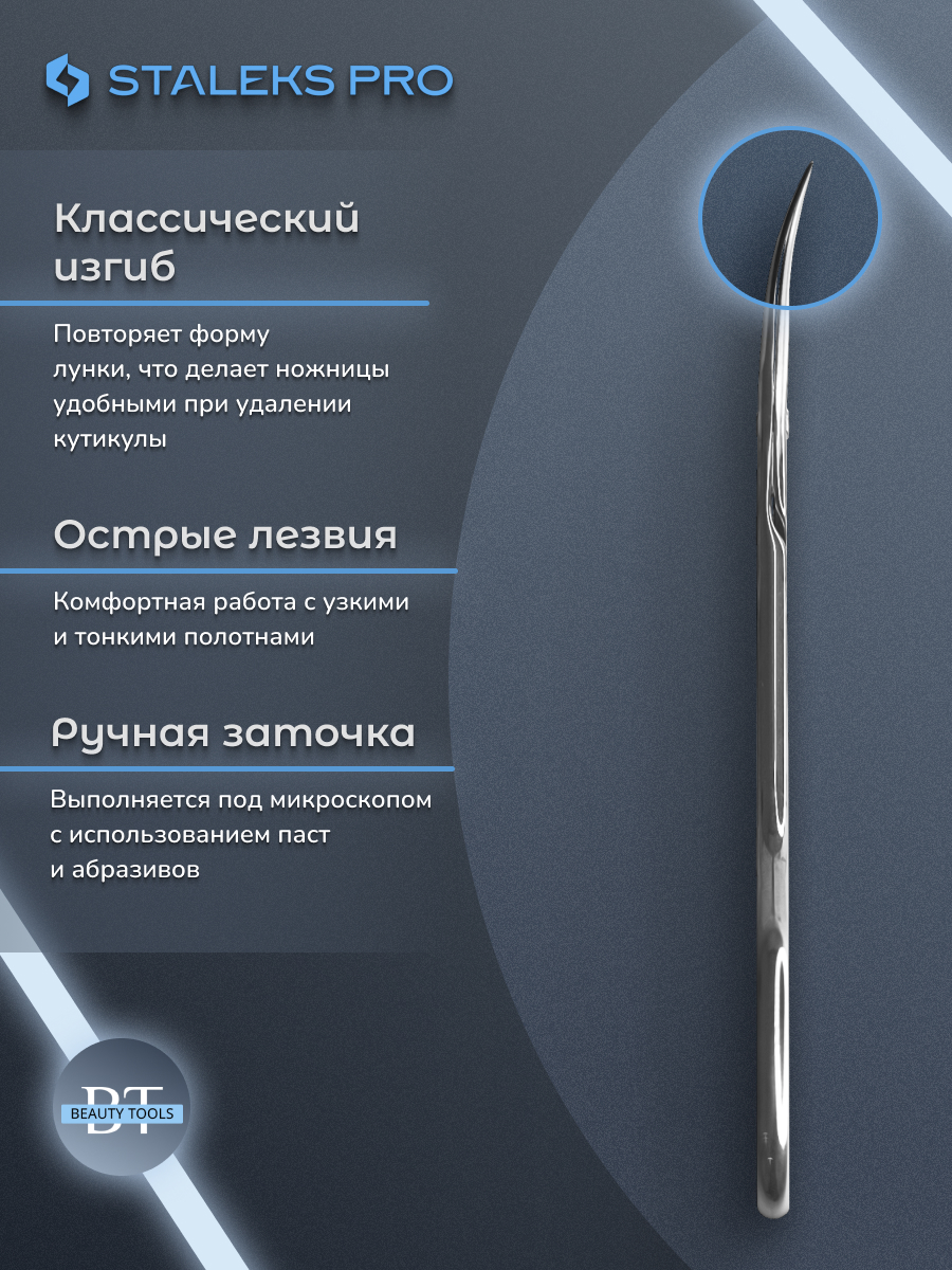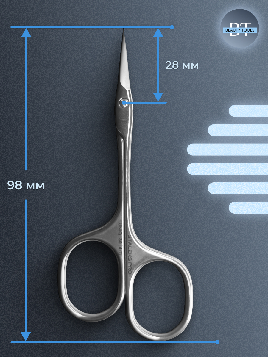 Профессиональные ножницы для кутикулы STALEKS PRO “Asymmetric” UNIQ 30/4 (25mm) — первая в мире конструкторская разработка с асимметричными разноуровневыми кольцами среди маникюрных ножниц. Ручки разной длины (правое кольцо внизу) обеспечивают удобное естественное положение пальцев во время работы. Узкие лезвия дают тончайший срез даже обладателям нежной, полупрозрачной кутикулы, не травмируя поверхность ногтевой пластины. Изготовлены из высококачественной нержавеющей стали, которая длительное время не подвергается коррозии и выдерживает многократные заточки. Инструмент устойчив ко всем видам дезинфекции и стерилизации. В товаре идеально сочетаются качество, функциональность и дизайн.