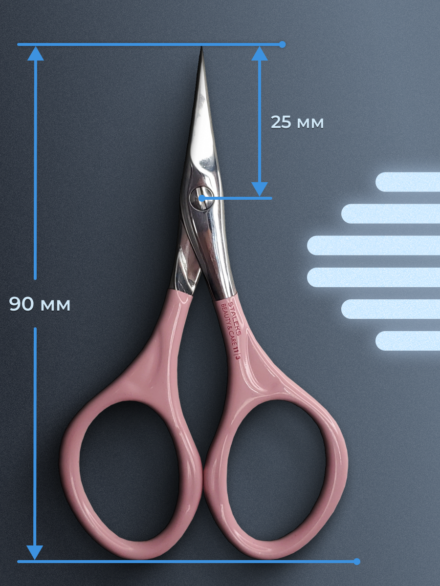 Универсальные маникюрные ножницы Beauty&Care 11 type 3 для кутикулы и ногтей. Инструмент изготовлен из медицинской нержавеющей стали. Медицинский сплав проходит пескоструйную обработку, а после передается на ручную заточку мастерам Сталекс. У ножниц современный дизайн матовые ручки и глянцевая режущая часть. Острые лезвия не оставляют заусенцев на коже и поверхности ногтя, что отличает премиальные инструменты от более дешевых аналогов. Данные ножницы не стоит подвергать агрессивной обработке химическими средствами или стерилизовать в сухожаре, его можно только дезинфицировать.