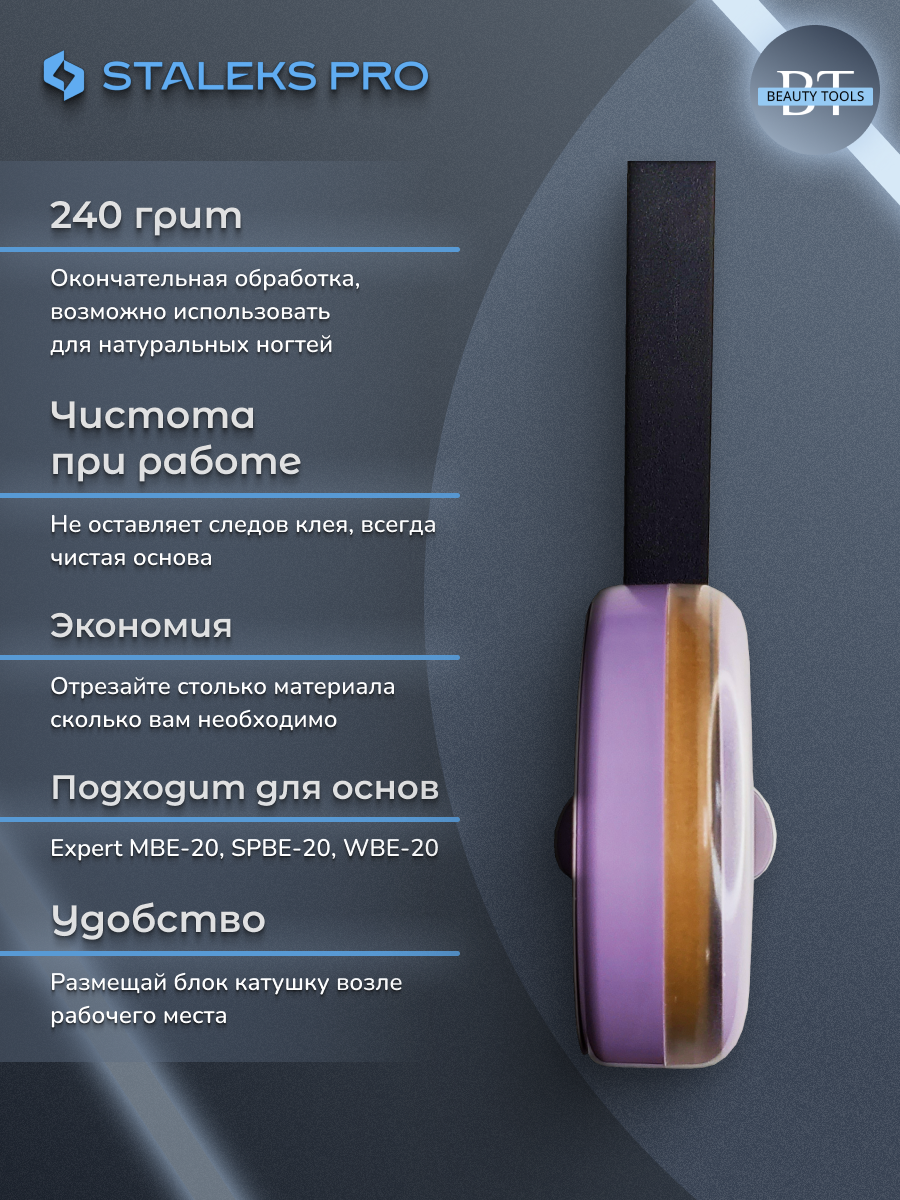 - Возможность самостоятельно отмерить длину сменного файла;- до 80 сменных файлов в рулоне;- высококачественный абразив;- не размокает в воде;- надежная клейкая основа;- компактный размер;- пластиковый футляр защищает абразивную ленту от грязи и повреждений;- cпециальная клипса для удобного деления абразивной ленты;- минеральный абразивный материал карбид кремния; - 100 грит- для придания длины и формы. - 150 грит - для придания длины и формы искусственным ногтям. - 180 грит - для обработки искусственных и натуральных ногтей. - 240 грит - для шлифовки и обработки искусственных и натуральных ногтей.